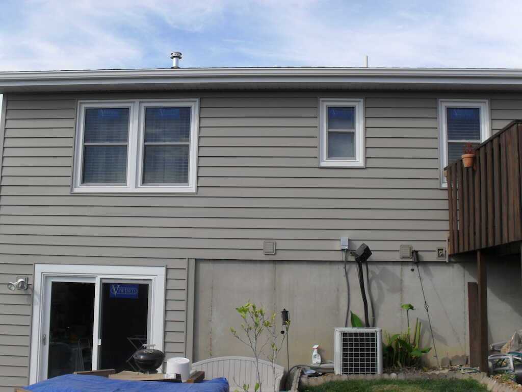 CraneBoard® Solid Core Siding® White, CraneBoard® Solid Core Siding® Board & Batten, Wincore 7700 Series Windows, CertainTeed Monogram® Horizontal Vinyl Siding Granite Gray
